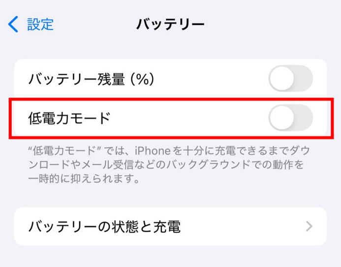 端末(スマートフォン、タブレット)の設定画面より、位置情報とBluetoothがON、低電力モードがOFFになっていることをそれぞれご確認ください。